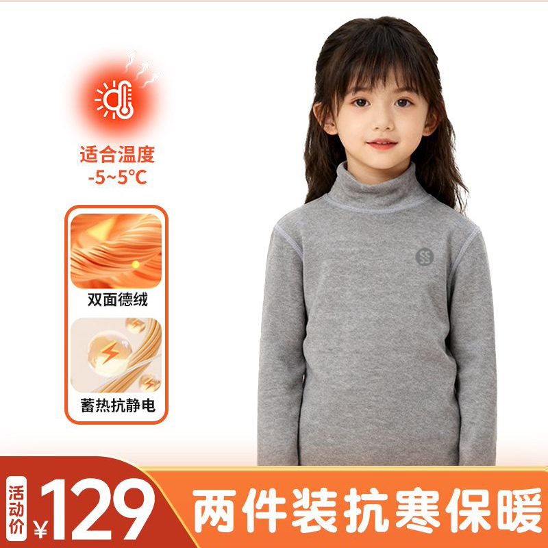 (2件装)灰色德绒半高领打底衫