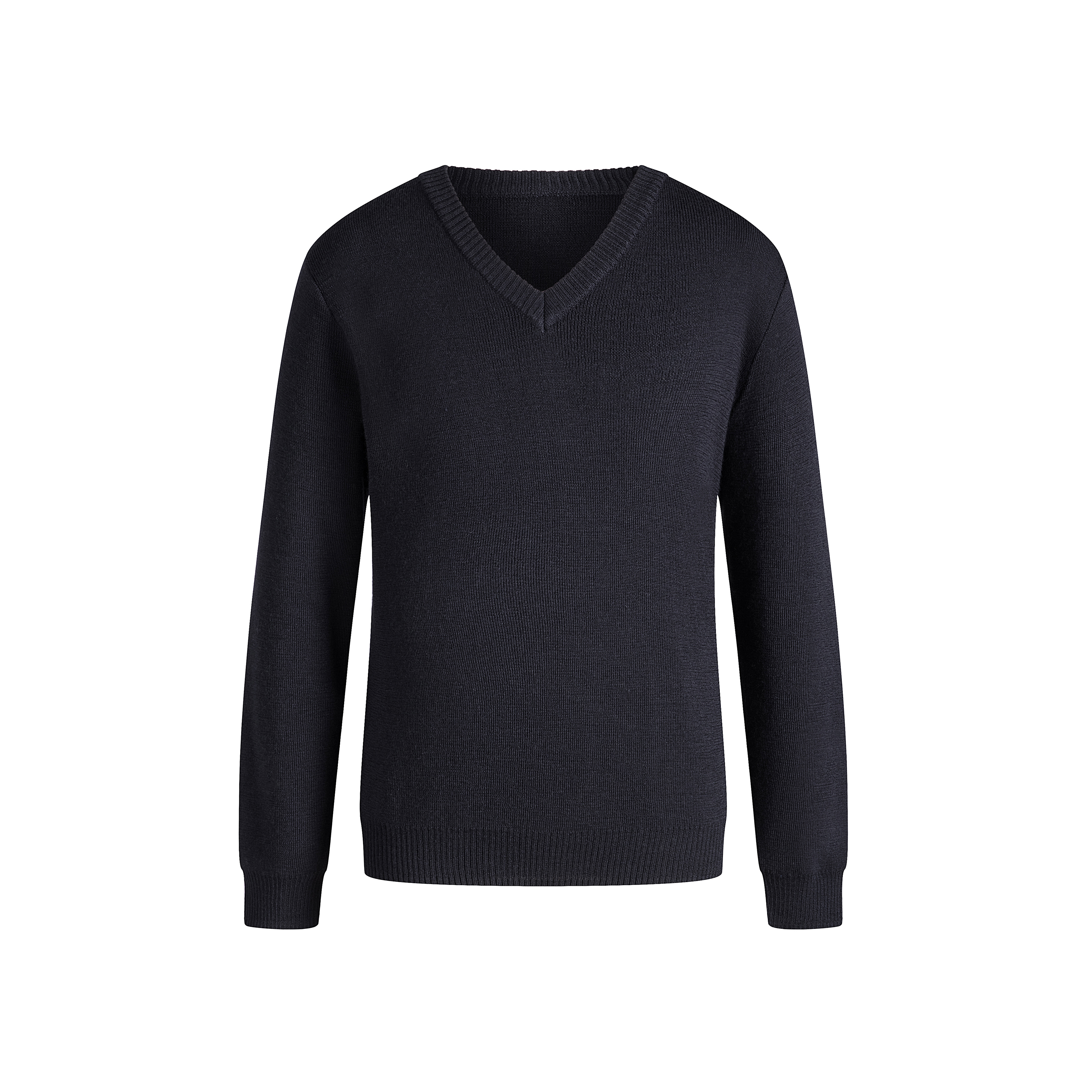 藏青色V领毛衣