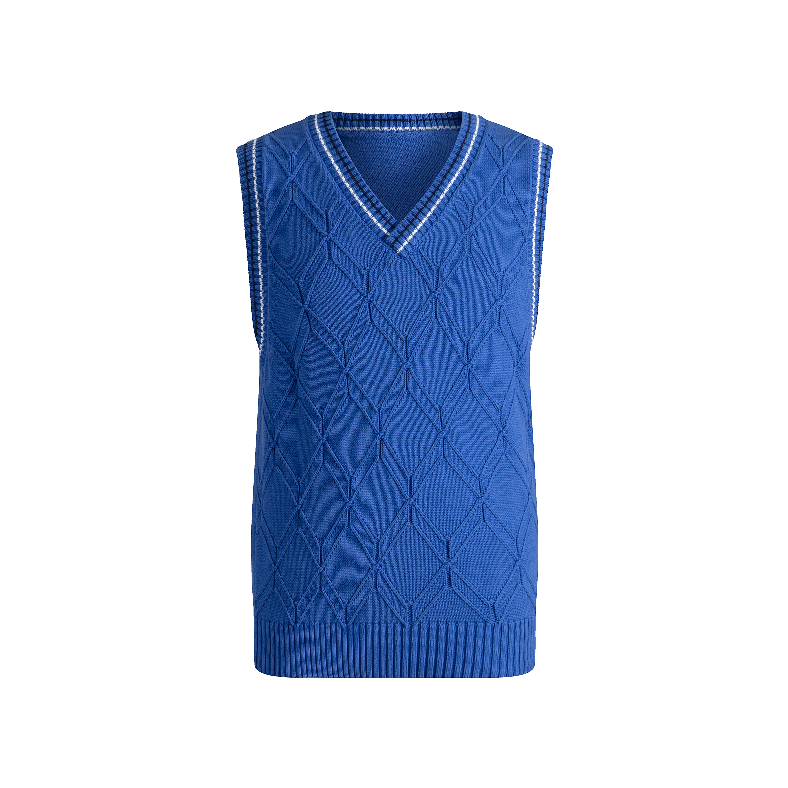 品蓝菱形格纹背心