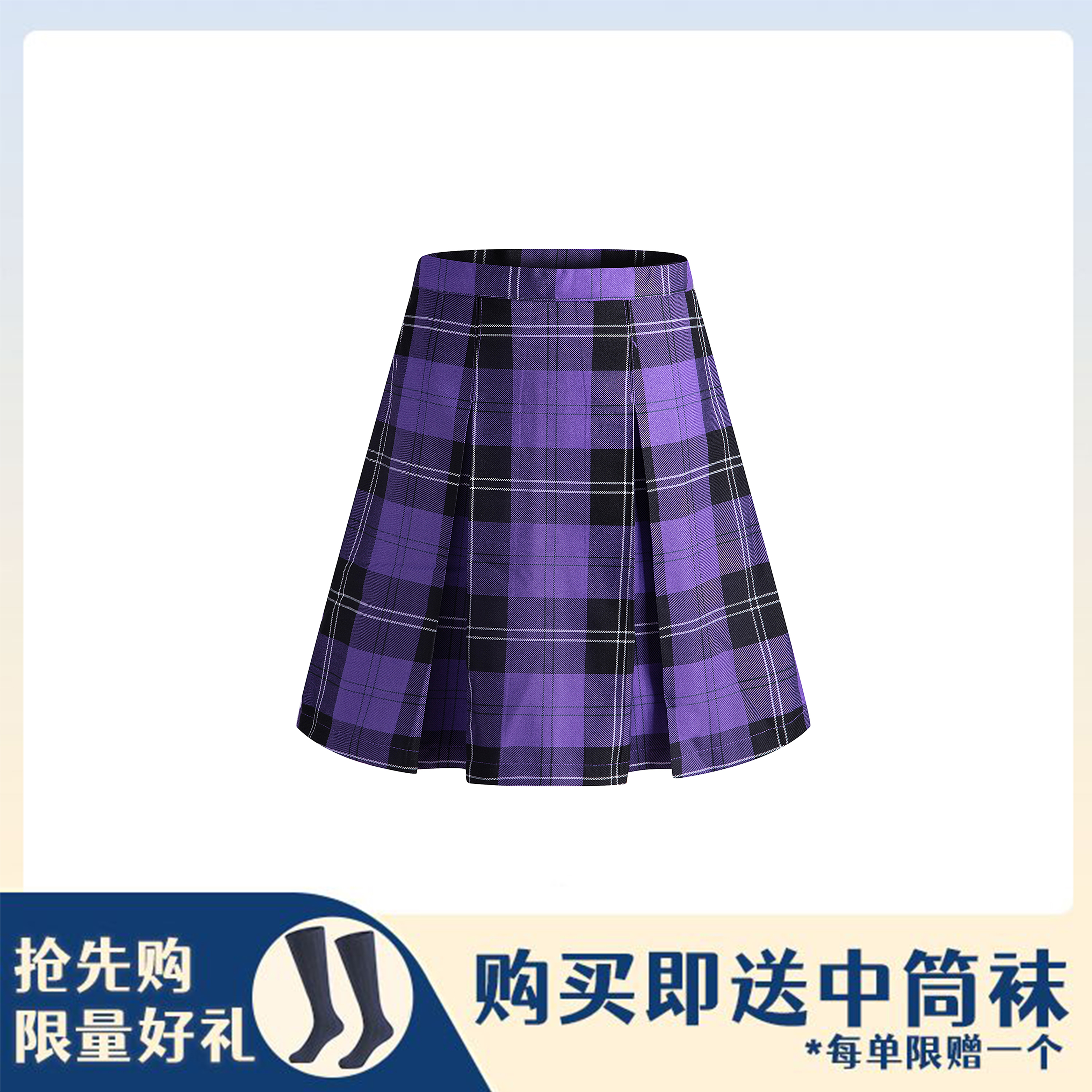 冬季紫色格子短裙(送中筒袜)