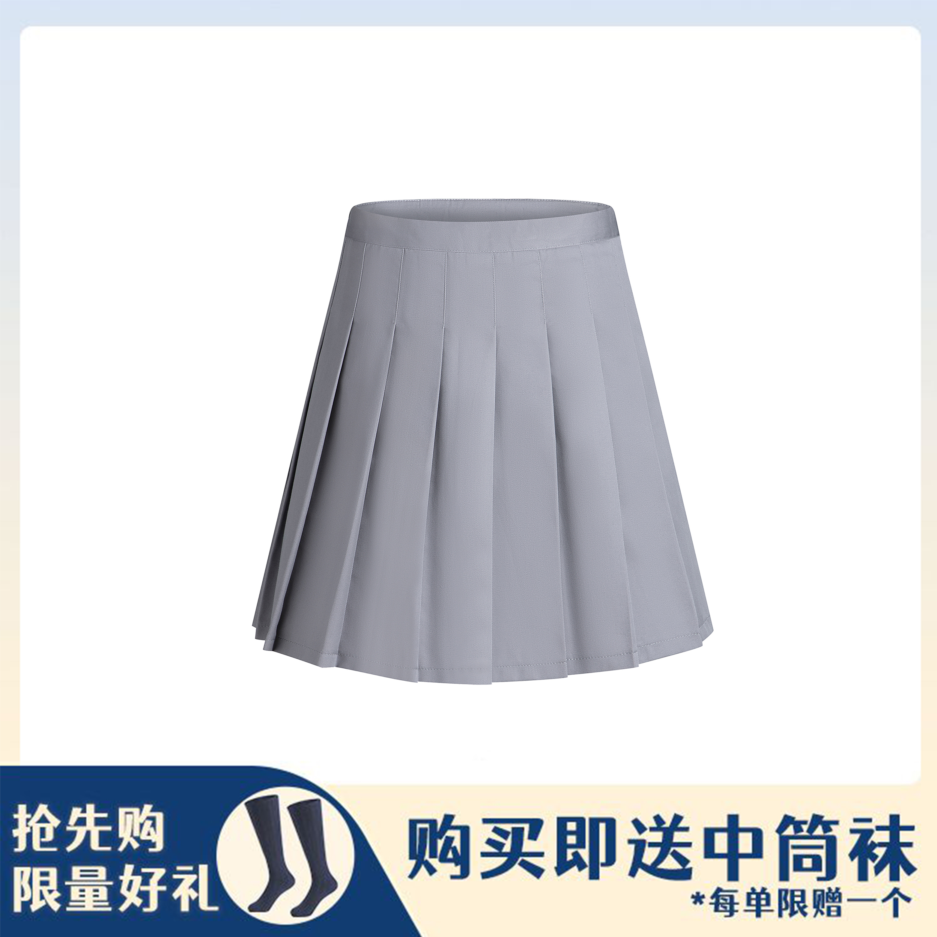 麻灰薄款百褶裙(送中筒袜)